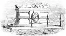 He is buried at Abney Park Cemetery near the Church Street (southern) entrance, in a grave marked by a grey granite obelisk.[17] The top is missing from the obelisk. His wife, Margaret (1817–1891), and eldest son, Charles Edward Baines Reed (killed accidentally in 1884), lie with him. His second son, Andrew Holmes Reed, lies nearby to the south, beneath a large grey granite Celtic cross.