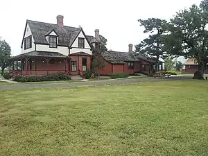 The Charles and Mary Ann (Molly) Goodnight Ranch House is listed on the National Register of Historic Places. The Goodnight home is located one-quarter mile (400 m) south of U.S. Highway 287 about 40 miles (60 km) east of Amarillo. The home was renovated by the Armstrong County Museum from 2006 to 2012.[9] The structure was painted to resemble its appearance in 1887. The interior was restored based on research into the original paint and wallpapers used. In 2005, Amarillo businessman Brent Caviness and a partner donated the home and 30 acres (12 ha). Mary Ann Goodnight taught children in the bunkhouse. The cowboys slept there at night, and she moved their things aside for school during the day, Goodin said.