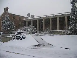 Cheyenne Arapaho Hall is a student residence hall at University of Colorado Boulder, in Boulder, Colorado. Located on the south side of Farrand Field, between the Wardenburg Health Center and Willard Hall, it was completed in 1954 and designed by Trautwein & Howard (Philadelphia) and Peterson & Linstedt (Denver).[1] In the Summer of 2007 Cheyenne Arapaho underwent the Residential Annual Modernization Program (RAMP) which updated community bathrooms, installed new flooring, doors, electronic locks and window coverings and repainted the building's entire interior. Refurbished rooms have bright new furniture and padded note-board walls, and bathrooms feature new sinks, countertops, low-flow toilets and showerheads and walls with tiled CU logos.[2]