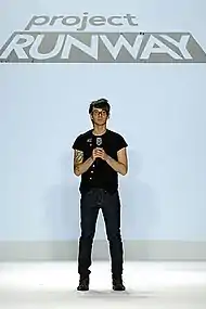 Before auditioning for Project Runway, Siriano worked as a freelance make-up artist and made wedding gowns for private clients[9] while also holding a brief intern position at Marc Jacobs.[6] He decided to audition for the show after the suggestion of a friend's mother.[9] During his time on the fourth season of Project Runway, he won three challenges, the most of any contestant that season.[15] Siriano advanced to the show's finals, and won a spot to show a twelve-piece final collection at New York Fashion Week. His collection was made up of Musketeer-inspired couture, featuring ruffles, feathers and headwear.[16] During the finale, which aired on March 5, 2008, celebrity guest judge Victoria Beckham praised Siriano's collection as being a "breath of fresh air" and stated that she would be "honored to wear" any piece of his clothing.[16][17] As the winner, he was awarded a fashion spread in Elle magazine, a 2008 Saturn Astra, and US$100,000 to start his own fashion label.[18] He was the youngest designer to win the competition.[1] Siriano returned to the show to mentor designers in seasons 17 (2019), 18 (2019), 19 (2021), and 20 (2023).[19]