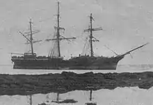 Upon reaching South Australian waters at the end of this voyage, severe gales were encountered resulting in the stranding of City of Adelaide. The storms also caused incidents and losses of other vessels along the South Australian coast. The schooner Mayflower, on her way from Port Broughton to Port Adelaide, lost one of her crew overboard and he drowned: the crewman was on his way to Port Adelaide to meet his wife who was one of the migrants aboard City of Adelaide.[18] Amongst the cargo on this voyage were two Scottish Deerhounds, bred by the Marquis of Lorne, John Campbell, 9th Duke of Argyll, and being imported by Sir Thomas Elder.[19] A day after the stranding the passengers were removed by steam tugs. City of Adelaide was refloated on 4 September after much of the cargo had been discharged and much of the rigging temporarily removed. The ship was virtually undamaged.