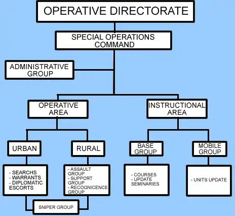 Colombian National Police Special Operations Command (Spanish: Comando de Operaciones Especiales, COPES) is a subdivision of the Colombian National Police under the Directorate for Citizens Security. This Special Operations unit functions as a Quick reaction force (QRF) for Police operations and as a permanent training field for personnel.