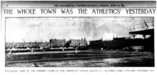 The A's practiced at the park for the first time on April 5, 1901, with 600 fans in attendance.[4] The first game at the ballpark was on April 8, 1901; the A's defeated Frank Moss' Professionals 8–1 in front of 1,000 fans on a cold and bleak day. Bill Bernhard started for the Athletics and his first pitch to Arlie Latham was a strike.[5]