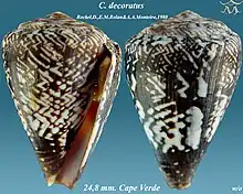 - Conus decoratus Röckel, Rolán & Monteiro, 1980. Retrieved through: World Register of Marine Species on 9 December 2018.