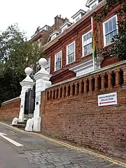 In 1951 the Mothercraft Training Society closed and The Princess Elizabeth of York Hostel (now listed Grade II) was sold separately to the Metropolitan Police Service as accommodation for police officers, and is now student accommodation, accessed from Winchester Place, called Princess Elizabeth House.[11] Cromwell House was sold to the Church of England Zenana Missionary Society (absorbed into the Church Missionary Society in 1957),[12] to be followed in 1970 by the Roman Catholic Montfort Fathers who vacated in 1983.[4] The building stood empty for several years, which worried local residents to such an extent that an Independent Cromwell House Working Group was formed to campaign for the preservation of the house.[3] In 1988, it was sold to a developer who undertook renovations and it was subsequently sold to its current owner, the Republic of Ghana, which uses it as the Visa Section of its High Commission in Belgravia.[13]