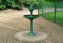 Cwmdonkin Park features heavily in Thomas's radio broadcasts, Return Journey and Reminiscences of Childhood, and is the setting for his poem 'The Hunchback in the Park'. In the poem, Thomas mentions 'the fountain basin where I sailed my ship' – a reference to the park's cast-iron drinking fountain, which is still in place today (though the 'chained cup' has been removed).