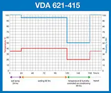 • A controlled humidity/humidity cycling phase. This requires the tests samples to be exposed to a controlled temperature and controlled humidity climate, which can either be constant or cycling between different levels. When cycling between different levels, the rate of change may also be specified.