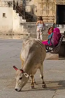 According to Wendy Doniger, during the early Common Era, the ideal Hindu devotee's practice changed from sacrifice and consumption of cows to milking of cows.[46] In other words, she argues, there was a cultural shift between "hunting" cows and "preserving" them in order to use products such as milk.[47] Milk, curd and ghee were three of the five sacred cow products for Hindus.[48]