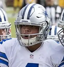 Rayne Dakota Prescott[1] (born July 29, 1993) is an American football quarterback for the Dallas Cowboys of the National Football League (NFL). He played college football at Mississippi State, where he twice received first-team All-SEC honors, and was selected by the Cowboys in the fourth round of the 2016 NFL Draft.