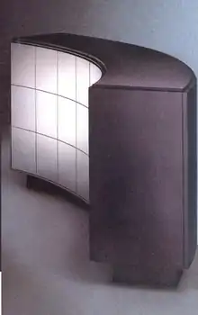 The DataVault was an example of unusual industrial design. Instead of the usual rectilinear box, the cabinet had a gentle curve that made it look like an information desk or a bartender's station.[2]