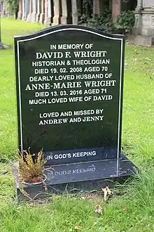 David F. Wright (1937–2008) was an English-born historian, who taught for almost a half-century at University of Edinburgh's New College.