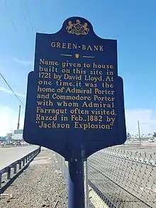 In 1721, Lloyd built a grand house which in subsequent years became the property of Commodore David Porter and became known as the Porter House.[13] The house became the location of Jackson's Pyrotechnic Manufactory and on the evening of February 17, 1882 caught fire and a large stock of fireworks exploded, destroying the home, killing eighteen people and wounding fifty-seven other.[14]