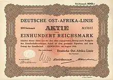 Deutsche Ost-Afrika Linie (German East Africa Line) was a shipping line, established in 1890 as an alternative to the existing shipping services to East Africa, including German East Africa (1891–1919), then dominated by United Kingdom shipping lines.