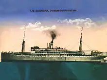 In 1888, the board of the trading firm Woermann-Linie made plans to set up a scheduled service to East Africa as the existing routes were dominated by British lines. The following year the Reichstag approved such a shipping line and in January 1890 the Chancellor began looking for a German shipping company to set up a line to Africa subsidized for over ten years with 900,000 marks a year. As no company was ready, the Reich announced the establishment of a shipping company.[1] On 19 April 1890 the Deutsche Ost-Afrika Linie was founded with a capital of six million marks by a consortium of German banks and the Hamburg merchants Adolph Woermann, F.Laeisz, August Bolten, and Hansen & Co. C. Woermann took over the management with Adolph Woermann as Chairman of the Supervisory Board.[2] The line began operating on 23 July 1890 with two steamers purchased from the Woermann line. Beginning in 1891, the service consisted of weekly departures from Hamburg via the Mediterranean to Bombay-Zanzibar.