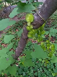 Dioscorea villosa is a species of twining tuberous vine which is native to eastern North America. It is commonly known as wild yam, colic root, rheumatism root, devil's bones, and fourleaf yam.[2] It is common and widespread in a range stretching from Texas and Florida north to Minnesota, Ontario and Massachusetts.[1][3][4][5][6]