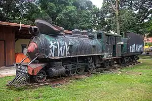 The locomotive was used to move sugar cane on the Usina Tamoio private railroad, in Araraquara, which ended at the Tamoio station near São Carlos.[1] It was in use until the line closed in the mid-1960s.[1]
