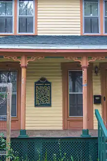 In the fall of 1869, the brothers Wilkinson and Jared Doughty moved to Mount Pleasant. Wilkinson Doughty purchased this house on September 26, 1869, and the two brothers opened a general store in downtown Mount Pleasant. The store was destroyed in a large 1875 fire, and Wilkinson Doughty went on to open a dry goods store.[3]
