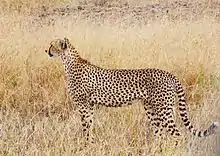 Not much was known about the East African cheetah's evolutionary story, although at first, the East and Southern African cheetahs were thought to be identical as the genetic distance between the two subspecies is low.[13] In the 1990s, it appeared from a DNA research that the East African cheetah is a separate subspecies differing from the Southern African cheetah.[14]