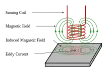 The relative motion causes a circulating flow of electrons, or currents, within the conductor. These circulating eddies of current create electromagnets with magnet fields that oppose the effect of applied magnetic field. The stronger the applied magnetic field, or greater the electrical conductivity of the conductor, or greater the relative velocity of motion, the greater the currents developed and greater the opposing field. Eddy current probes senses this formation of secondary fields to find out the distance between the probe and target material.