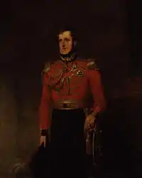 Bowater was advanced to a captain and lieutenant-colonel in 1814, receiving command of a company,[5] and when Napoleon returned from his exile in 1815, he led his men in the Battle of Quatre Bras.[1] He was wounded again in the Battle of Waterloo in June.[1] In 1826, Bowater was promoted to colonel[6] and in 1837 to major-general,[7] after which he was awarded a Knight Commander of the Royal Guelphic Order.[6] He obtained the colonelship of the 49th Regiment of Foot in April 1846[8] and became lieutenant-general in November.[6] In 1854 he was made a full general.[9]