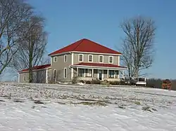 Edward Kelham House is a historic home located near Garrett in Keyser Township, DeKalb County, Indiana. It was built in 1870, and is a two-story, Italianate-style frame dwelling with Greek Revival detailing. It has one-story, hip roofed, Colonial Revival style front porch supported by Tuscan order columns. It has unfluted corner pilasters and a plain wide frieze.[2]: Part 1, p. 16