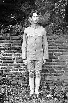 Holmdahl next fought against Datu Hassan, the youngest son of the Great Raja Muda Ammang, during the Hassan uprising.[15] In April 1905, Datto Pala, the chief of Sulu, invaded Jolo during the Battle of Mayhbun. Pala's attack failed, with 250 men, including Pala himself, being killed; while only 7 Americans were killed and 20 wounded. In March, Holmdahl fought during the First Battle of Bud Dajo.The now 21 one year old Holmdahl then fought in the Battles of Tambang Market, Ipal, and Palas Cotta, during which he earned much renown and recognition. Holmdahl's service records had a note stating "this soldier has a military ability and zeal to fit him for a commission as an officer a unit of United States volunteers". Holmdahl would be promoted to Sergeant of Company I on December 15, at only age 22.[16]