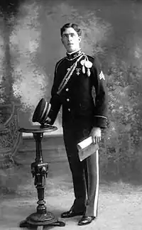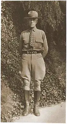 Emil Lugwig "Lewis" Holmdahl was born on August 26, 1883, in the Swedetown area of Fort Dodge, Iowa, to Swedish-American parents, Frans "Frank" Emil Holmdahl and his wife Cecelia Andrina Olson, the 6th of 7, possibly 8 children. His siblings were Amanda Esther Holmdahl (1875–?), Andrew Licerus Holmdahl (1876–?), August Emmanuel Holmdahl (1878–?), Monville A. "Monty" Holmdahl (1879-1956), Hedvig Nathaniel "Edward" Holmdahl (1881–1955), and Minnie A. Holmdahl (1886–1968). Both of his parents were immigrants from Sweden, his father worked for the Fort Dodge Gas and Electric Company as did two of his brothers, although they lived a rural farming lifestyle. Little is known about Holmdahl's early life but he appears to be something of an adventurous but troublesome child, often getting into trouble with his school and authorities. According to Douglas V. Meed, a historian and expert on 19 and early 20th century American history, Holmdahl loved "Rudyard Kipling's stories" and tales of exotic battle. His father left home when he was young to start a new family in California, as he had done this previously done in St. Paul, Minn. His father's escapades may have influenced Holmdahl's extraordinary wanderlust that resulted in the life that he would lead later in life.[1] The young Holmdahl did not get much of a formal education, although he learned to read to write, and would be known for his "exquisite handwriting and signature".[2]
