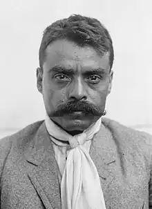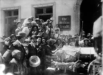 Holmdahl by now deeply committed to Madero's cause joined Generals Pancho Villa and Pascual Orozco in launching an assault on the city without consulting Madero and blamed it on a "spontaneous" outbreak in fighting.[44] The incident that served as an excuse for the offensive occurred when a federal officer insulted a female rebel on a bridge between Ciudad Juárez and El Paso.[45] Madero attempted to halt the violence but Orozco and Villa pressed on. Both of them went to great lengths to avoid Madero so they wouldn't have to disobey a direct order. Even when Villa was eventually confronted by Castulo Herrera with explicit instructions to stop fighting, he simply ignored him. Likewise, when Madero finally managed to see Orozco in person, he was simply told that the battle was already raging and it was too late to stop it.[46] Orozco attacked in the north and Villa in the south. Both of them led their troops parallel to the US border so that neither their shots, nor those of the town's garrison were likely to cross on to the American side.[47] In fact, several thousand American civilians had gathered in El Paso in order to watch the struggle as spectators, and after 3 days of fighting the town fell.[48]