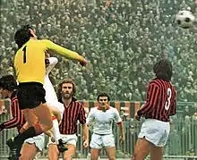 Born in Pontremoli, at club youth level, Albertosi represented the Spezia youth academy for a season, before making his debut in Serie A at the age of 18 for Fiorentina on 18 January 1959, playing in a goalless draw with A.S. Roma. Despite heavy competition from Giuliano Sarti during his first five seasons at the Tuscan club, where he initially mainly served as a back-up, Albertosi represented Fiorentina until 1968, winning a Mitropa Cup in 1966, a European Cup Winners' Cup in 1961 (the first ever edition of the competition), and 2 Coppa Italia trophies in 1961 and 1966. He later transferred to Luigi Riva's side, Cagliari Calcio, where he helped to win Cagliari's legendary first and only Scudetto during the 1969–70 season, his second season with the Sardinian club, recording what was at the time the lowest number of goals conceded in a 16-team Serie A campaign. He later transferred to A.C. Milan in 1974, where he remained for six years, and he won yet another Serie A championship medal with the club during the 1978–79 season, along with another Coppa Italia during the 1976–77 season.[1][3][4][5][6] With 233 appearances for the club, he is Milan's fifth-most capped keeper of all time, behind only Christian Abbiati (380), Sebastiano Rossi (330), Dida (302), and Lorenzo Buffon (300).[7]