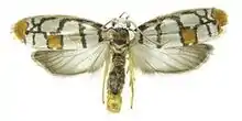 The length of the forewings is 8.3–10 mm (0.33–0.39 in). The ground color of the forewings is white with distinct brownish black lines which reflect bluish. The ground color of the hindwings is whitish, becoming brownish apically. Adults are on wing from late March to May (in Yucatán and Panama), in July (Oaxaca and Nicaragua) and in July and October (in Colombia).[1]