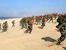 TROPEX 2009 took place from 27 January to 25 February 2009.[11] It was conducted by the Indian Navy, Indian Air Force and Indian Coast Guard at Madhavpur Beach, Gujarat.[20][21] The exercise involved an amphibious landing on the beach and complex military manoeuvres.[20] It included around 1,500 Indian Armed Forces' personnel.[21] Indian Navy assets included amphibious transport dock INS Jalashwa, amphibious warfare vessels, fleet ships with their integral helicopters, shore-based aircraft, and submarines. Indian Air Force assets such as Jaguar and MiG-29 aircraft were also seen in action.[20] It was witnessed by then Air Marshal K D Singh (AOC in C, South Western Air Command), then Vice Admiral J S Bedi (FOC in C, Western Naval Command) and then Lieutenant General Pradeep Khanna (GOC in C, Southern Command).[20]