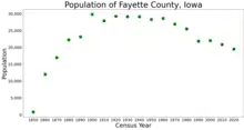 Fayette County is a county located in the U.S. state of Iowa. As of the 2020 census, the population was 19,509.[1] The county seat is West Union.[2]