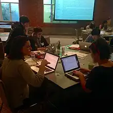 The Fembot Collective is an international collective of feminist media activists, artists, producers, and scholars that publishes the academic journal Ada: A Journal of Gender, New Media, and Technology.[1] Fembot has been a catalyst for multiple large scale feminist digital projects, providing the digital and social infrastructure for FemTechNet,[2][3] publishing the podcast series Books Aren't Dead,[4] and hosting collaborative hack-a-thons and Wikipedia edit-a-thons with Ms. magazine.[5] Although having been funded and supported by multiple institutions including School of Journalism and Communication and the Center for the Study of Women in Society at the University of Oregon.,[6] Fembot is concentrated in the University of Maryland currently.