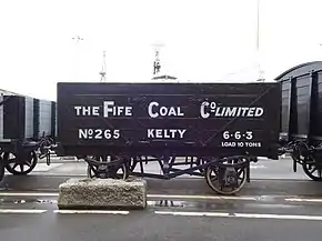 The Fife Coal Company was formed in 1872 to acquire the small Beath and Blairadam Colliery with its pits in Kelty. Its head office was in Leven.[5][6] In addition to coal, the company worked some ironstone.[7] For the whole of its operating life, the company was run by Charles Carlow and then his son C. Augustus Carlow. Output was expanded from an initial 70,000 tons a year to 4.3m. in 1911. Although it became the largest coal company in Scotland, Fife Coal never regained that level of output in the inter-war period.