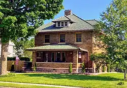The First Avenue East Historic District is a nationally recognized historic district located in Newton, Iowa, United States. It was listed on the National Register of Historic Places in 2020.[1] At the time it was studied for the City of Newton it contained 30 resources, which included 20 contributing buildings and 10 non-contributing buildings.[2] The district is mainly a residential area made up of single-family houses and their outbuildings. It is immediately adjacent to the Newton Downtown Historic District to the west. Many of the homes in the district were built by locally prominent businessmen, especially those involved with the washing machine industry, as well as bankers, and merchants; many of which contributed to the development of the City of Newton. There are many examples of high-style architecture popular when the houses were built in the late-19th and early-20th centuries. The most visible style in the district, however, is the two-story family home American Foursquare.[2] There are also bungalows. In addition to houses, there are several commercial buildings in the district, two of which, Jasper County Farm Bureau (1952) and Yes Way Gas Station (1968) are contributing properties. The August H. Bergman House is individually listed on the National Register of Historic Places and four others have been deemed to be individually eligible guys.[2]