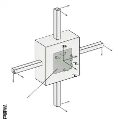 Passive compliance control (also known as compliance control) does not require force measurement because there is no explicit force control. Instead, the manipulator and/or end effector is flexibly designed in a way that can minimize contact forces that occur during the task to be performed. Typical applications include insertion and gripping operations. The end effector is designed in such a way that it allows translational and rotational deviations orthogonal to the gripping or insertion direction, but has high stiffness in the gripping or insertion direction. The figure opposite shows a so-called Remote Center of Compliance (RCC) that makes this possible. As an alternative to an RCC, the entire machine can also be made structurally elastic.