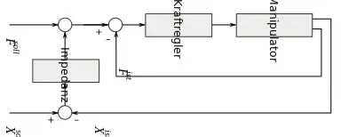 The figure shows the block diagram of a force-based impedance control. The impedance in the block diagram represents the mentioned components L, A and . A position-based impedance control can be designed analogously with internal position or motion control.