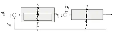Analogous to an inner position control, an inner velocity control can also take place, which has a higher dynamic.[11] In this case, the inner control loop should have a saturation in order not to generate a (theoretically) arbitrarily increasing velocity in the free movement until contact is made.