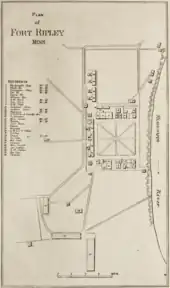 Fort Ripley was a United States Army outpost on the upper Mississippi River, in mid-central Minnesota from 1848 to 1877. It was situated a few miles from the Indian agencies for the Ho-Chunk and Ojibwe in Iowa Territory and then the Minnesota Territory. Its presence spurred immigration into the area and the pioneer settlement of Crow Wing developed approximately 6.75 miles (10.86 km) north of the fort. The post was initially named Fort Marcy. It then was renamed Fort Gaines and in 1850 was renamed again for distinguished Brigadier General Eleazer Wheelock Ripley of the War of 1812.[2] It was the second major military reservation established in what would become Minnesota.