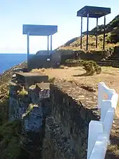 Erected on the eastern flank of the Monte da Guia, in a dominant position over the Bay of Horta, and integrated into the medieval defensive system against pirates in the channel.[1] It was built from masonry stone and volcanic rock: its most obvious extent is visible in the dozen canon battlements that face the island of Pico.