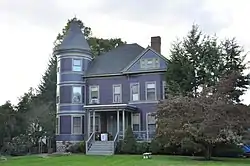 Built in 1894, this 2+1⁄2-story wood-frame house is one of Waltham's finest Queen Anne Victorians. It is particularly distinguished by its elaborate three-story tower, which has a conical roof and bands of decorative shingles. The main entry is framed on the left by the tower, and on the right by a polygonal bay that rises a full two stories, and is capped by a squared-off projecting gable. The gable tympanum is filled by a three-bay window and clad in decorative cut shingles. The main entry is sheltered by a porch supported by paired Tuscan columns. The paneled door is flanked by sidelight windows and topped by a transom window.[2]