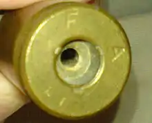 Early metallic cartridges produced at Frankford were not head-stamped. These were either Martin or Benet primed copper cases. Early cartridges were stamped "F" for Frankford, or "R" for rifle, or "C" for carbine. Ammunition produced prior to World War I was dated with the numerical month-year headstamp, such as "8 79" or "2 12", indicating August 1879 or February 1912 as the date of manufacture.[5]