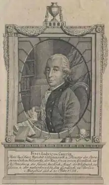 He was born into a German mining family where he was trained by his father in the science of mining. In 1764, he entered the service of the landgrave of Hesse-Kassel at Hanau, becoming professor of mathematics at the military academy, head of the civil engineering department of the state, director of the theatre and (1774) of the mint. A work on the copper mines of Elesse (1767) earned him a European reputation, and in 1783 he accepted from Catherine II of Russia the directorship of the famous Staraya salt-works, living thenceforth in Russia.[1]