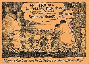 Lucy Shelton Caswell, Professor and Curator of the Cartoon Research Library at Ohio State University, has described Lasswell as "one of the few cartoonists to inherit a successfully syndicated comic strip and transform it into his own creation".[3] Cartoonist R.C. Harvey memorializes Lasswell as follows: {{blockquote|He was "Uncle Fred" to his colleagues in the National Cartoonist Society. He was an actively contributing member to the convivialities of the group for almost its entire existence, and no Reuben Weekend was complete without some shenanigan from Uncle Fred. Even the last year when he didn't attend, an unprecedented occurrence, he supplied punchlines for others standing at the microphone: all you had to do was refer to Uncle Fred—to one or another of his well-known proclivities—and you could get a laugh. Even though absent in person, he was present. His picture was on the cover of the program booklet. And one of the souvenirs of the event was a flip book featuring Uncle Fred in action. [5]