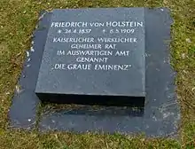 Friedrich August Karl Ferdinand Julius von Holstein (24 April 1837 – 8 May 1909)[1] was a civil servant of the German Empire and served as the head of the political department of the German Foreign Office for more than thirty years. He played a major role in shaping foreign policy after Bismarck was dismissed in 1890.