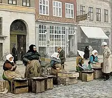 At the time of the 1840 census, No. 9 was home to five households. A restaurant had opened on the ground floor. Jørgen Fischer, the restaurateur, resided in the associated dwelling with his wife Maria Funch, their three children (aged nine to 14) and one maid.[13] Jens Larsen, a merchant (grosserer), resided in the basement with his wife Ellen Chatrine Kiøbenhavn, their two daughters (aged 13 and 15) and one maid.[14] Johannes Hansen, a bookkeeper at Tallotteriet with title of kammerråd, resided on the first floor with his wife Christine Fischer, their 21-year-old daughter Sophie Magdelene Hansen and one maid.[15] Janette Petersen, a 50-year-old "institute manager" (institutbestyrerinde), resided on the third floor with four girls in the age range 12–15, a housekeeper and a maid.[16]