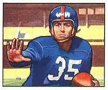 Eugene O. "Choo-Choo" Roberts (January 20, 1923 – July 6, 2009) was an American football halfback for the New York Giants of the National Football League (NFL) from 1947 to 1950. Roberts played college football at Chattanooga, leading the NCAA in scoring in 1946 with 117 points. He set the NFL and the New York Giants single game rushing record with 218 yards on November 12, 1950 against the Chicago Cardinals.[1] The NFL record was broken by Thomas Wilson of the Los Angeles Rams on December 16, 1956. The Giants single game rushing record stood for over 55 years, until it was broken by Tiki Barber on December 17, 2005.
