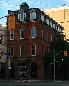 During the 1800s, the north section of the street was part of George William Allan's property, the basis of Allan Gardens today. The street was a desirable address, and several fine houses were built on the street.[3] In 1886, 295 George became the first international Fegan Boys’ Home. When it closed in 1937, it became the first Goodwill Stores location (now the site of VU Condominium). Next door at 297, the Salvation Army operated a rest home.[3] As the town and city grew to the west, the area from Jarvis east below Queen Street became an industrial area.