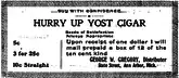 - "Advertisement for Hurry Up Yost Cigars, George W. Gregory Distributor". The Inlander, Vol. 13. March 1903.