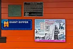 It was awarded the American Coaster Enthusiasts Golden Age Coaster award in June 1994. The 1920s is often considered the "golden age of roller coaster construction" so the award recognizes the roller coasters that still remain today.[12][17] It is only one of two roller coasters to receive this designation, the other being the Giant Dipper at Belmont Park.[12] Giant Dipper was also awarded the ACE Coaster Landmark award on May 5, 2007 at the 100th anniversary of Santa Cruz Beach Boardwalk. It won the award for its innovative track design, unusual curved station and for being one of the ten oldest operating coasters in the world and one of only three remaining examples of Frederick Church's work.[18]